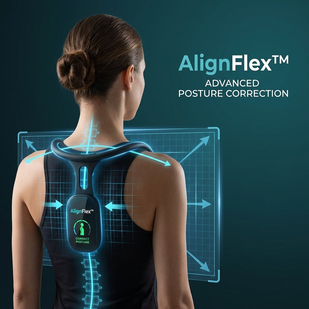 The AlignFlex™ Posture Corrector is engineered to support proper spinal alignment and reduce strain on your neck, shoulders, and back.